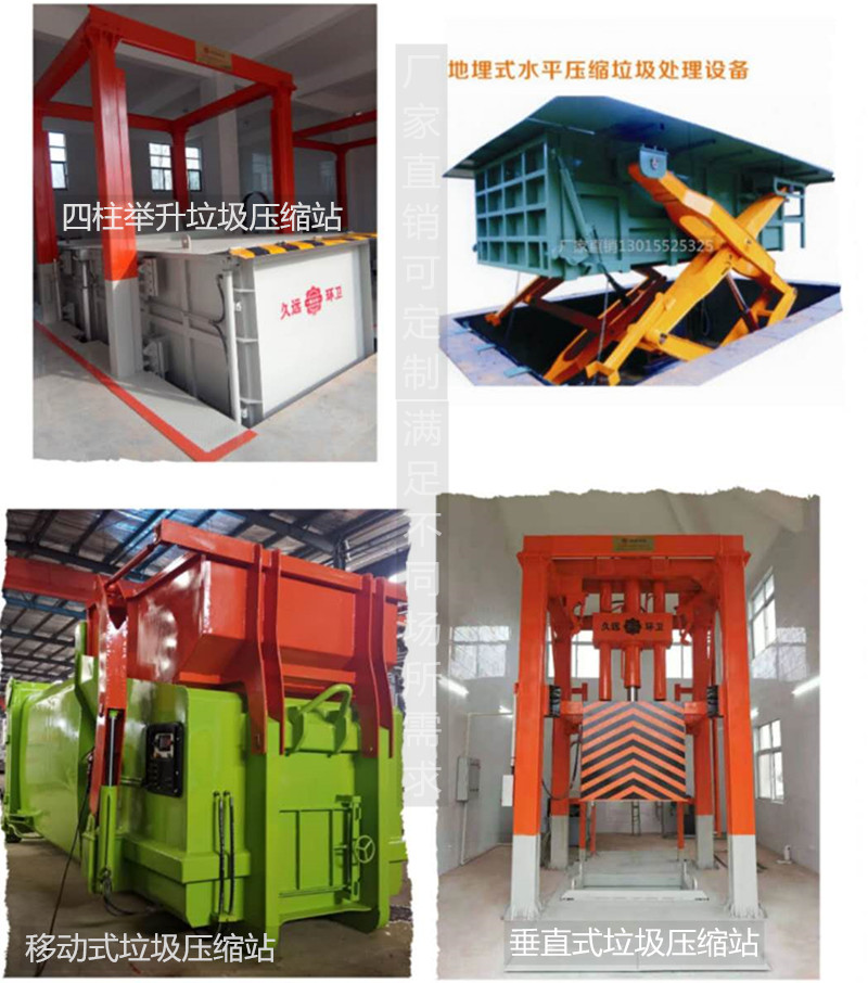 垂直式垃圾壓縮站、垂直式垃圾壓縮設備、垂直式垃圾壓縮中轉站、垃圾壓縮站生產廠家、垃圾壓縮站價格、三缸四柱垃圾站