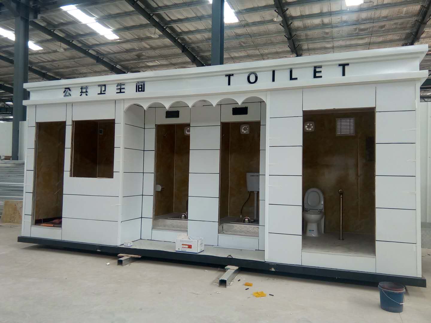 移動(dòng)廁所簡(jiǎn)介及制作方法:1、房體結(jié)構(gòu): 采用輕鋼龍骨結(jié)構(gòu),鋼材全部使用標(biāo)準(zhǔn)鍍鋅鋼材。根據(jù)房體的大小特選用國(guó)標(biāo)方管(50-100)焊接而成。鍍鋅管厚度為2.8mm,方管經(jīng)過(guò)除銹后進(jìn)行鍍鋅、防腐處理,這樣就會(huì)延長(zhǎng)廁所使用壽命.2、墻體: 墻板采用金屬雕花板,金屬雕花板是保溫、隔熱、環(huán)保、阻燃、防雨、防凍、隔音、抗震等...